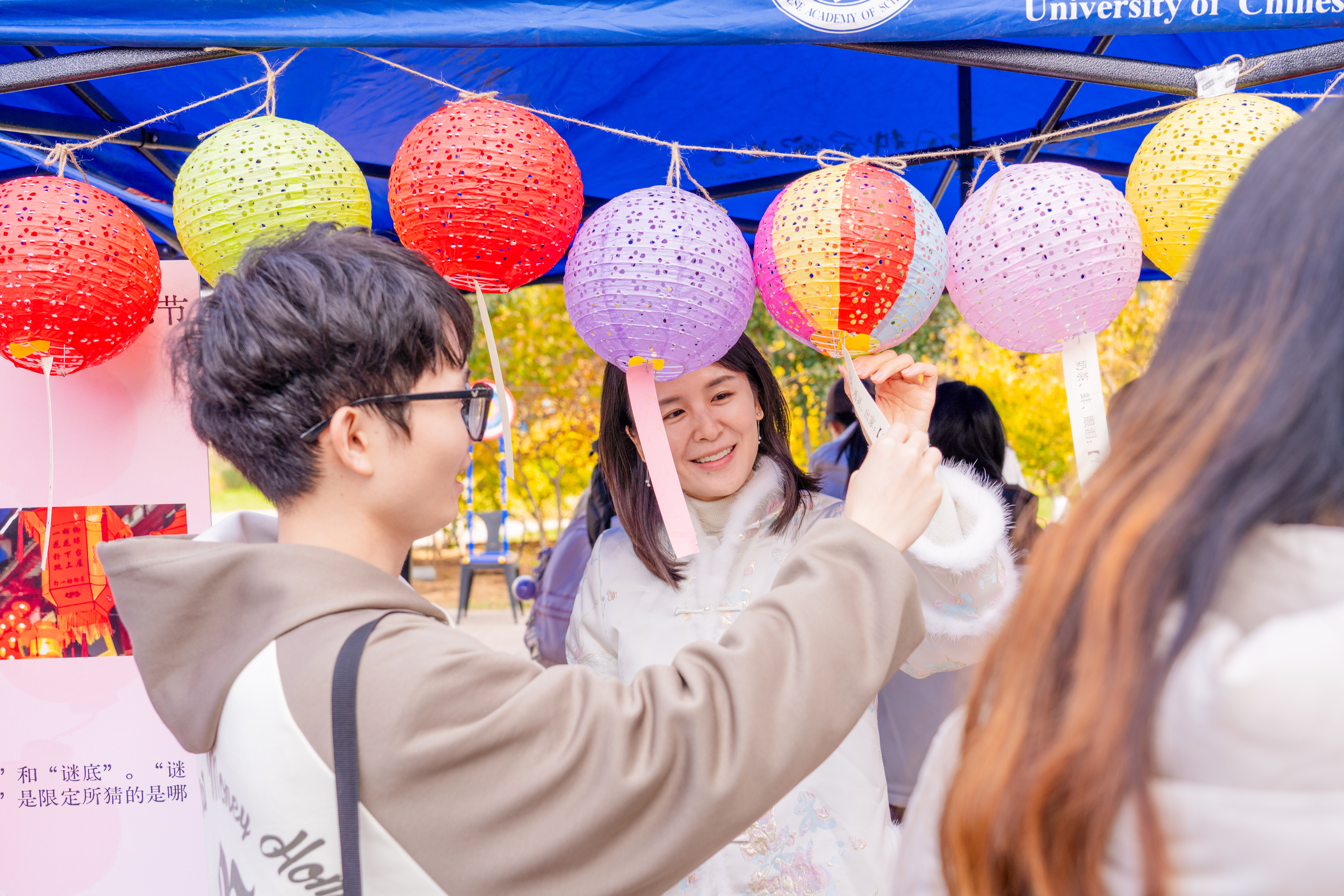 彩色灯笼悬挂,百道谜题飘扬。灯谜摊位中的谜题不仅包含诗词典故、生肖俗语,还融入了与国科大特色相契合的科学元素。参与者们在凝思中灵光乍现,在解题中感受传统文化与校园特色的结合,更在活动中享受纯粹的乐趣。
