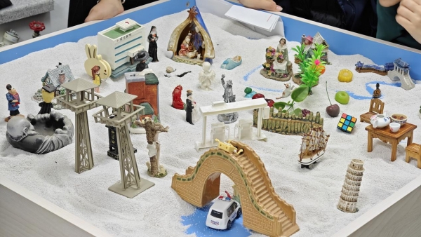 11月23日晚,两场“青衿心语”心理沙盘活动在心理健康教育中心开展。同学们在沙具与沙盘之间,构筑意象、诉说心情。一方沙盘,成为照见自我、聆听彼此的镜子,也为朋辈节拉开了宁静而深入的序幕。
