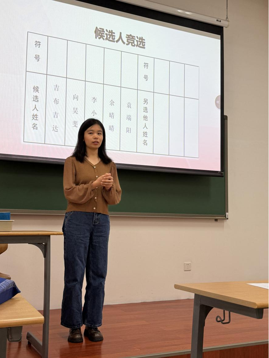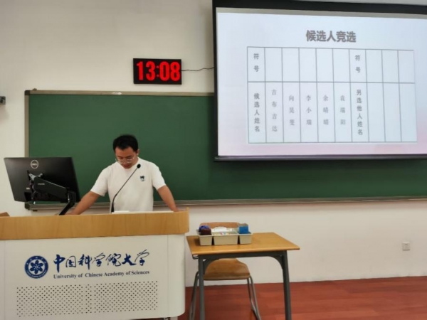 2025年9月16日,人文学院高年级硕士生党支部在雁栖湖校区东区教二楼113召开全体党员大会,采用无记名差额选举的方式,进行支部委员补改选。会议由原高年级硕士生党支部书记史芳祎同志主持,组织员李晨晨老师出席大会。