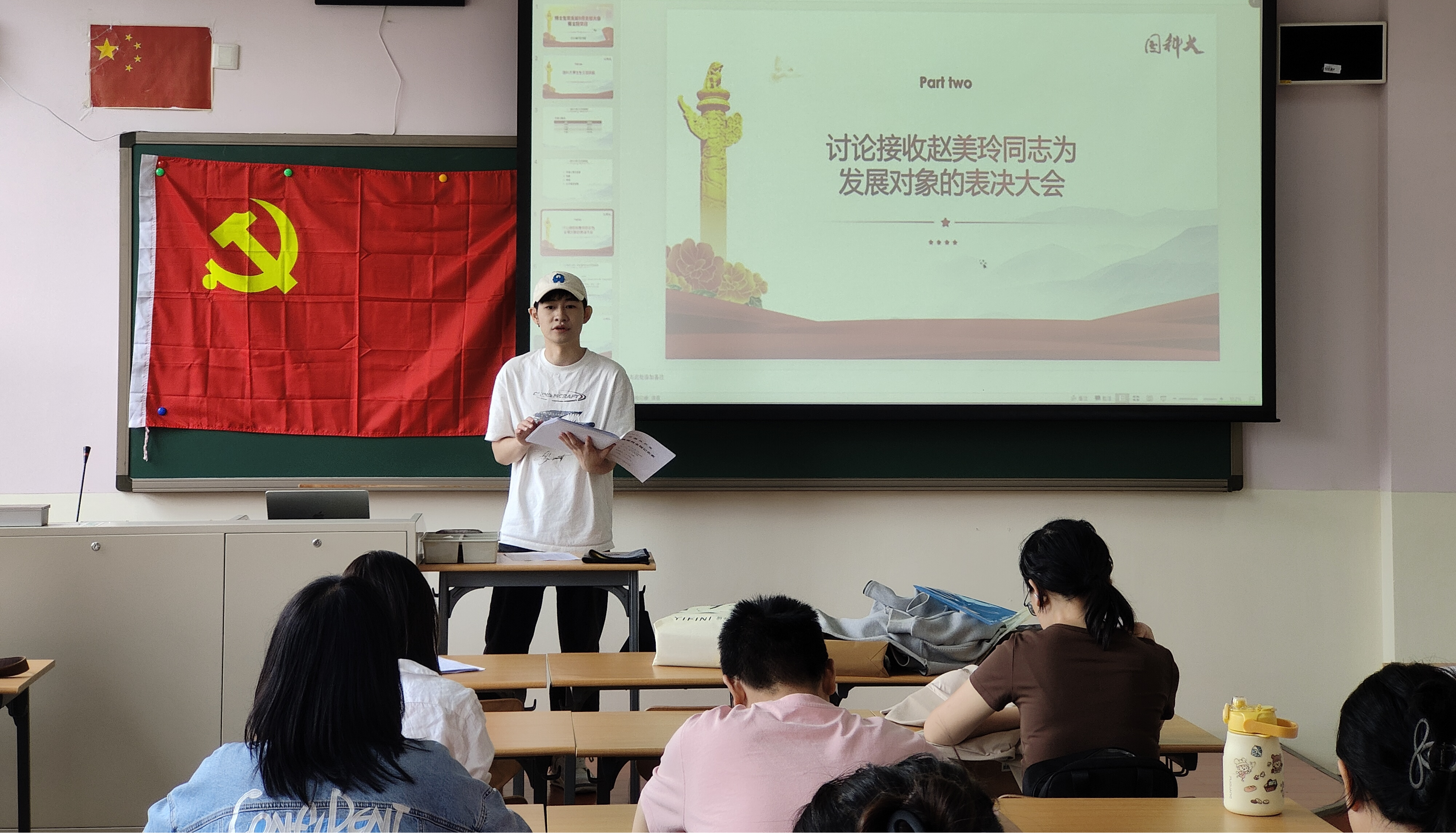 随后,参会的正式党员以无记名投票方式进行表决。唱票、计票过程严谨规范,四位候选人均以全票通过的优异成绩当选新一届党支部委员会成员。在新一届支委会第一次会议上,委员们明确了分工:程瑞同志继续担任党支书兼统战委员,张紫瑜同志担任副支书,史芳祎同志担任组织委员,王婉祯同志担任宣传委员,王贾曼同志担任纪检委员。新班子分工合理、职责明确,为接下来党支部工作的高效开展奠定了坚实基础。