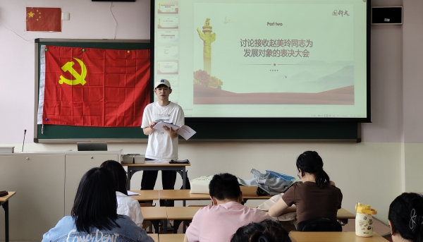 2025年9月23日中午,人文学院博士生党支部在学园一106召开了本学期组织生活会。在主持人程瑞同志的引领下,博士生党支部召开了换届大会。四位候选人张紫瑜、史芳祎、王婉祯、王贾曼依次进行了竞选演讲。他们从思想认识、工作经验、未来规划等方面进行了深入阐述,展现了青年博士生党员的责任担当与奋斗姿态。