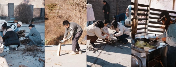 理论的说教远不如一次亲身的体验。在基地导师的指导下,全体成员共同投入了三个富有挑战的劳动环节。捡柴与砍柴成为大家面临的第一个考验。林间空地上,同学们学习辨认合适的柴木,掌握挥刀力度与角度。起初生疏的动作渐渐变得娴熟,清脆的劈啪声在林间回响。这个过程不仅考验体力,更培养了大家观察与判断的能力,让久坐书斋的学子体会到劳动中蕴含的智慧。紧接着是“挖菜窖”这一传统农事活动。大家轮番上阵,挥动铁锹,小心地拨开覆盖的松土,亲手将一颗颗饱满结实的白菜、一根根敦实可爱的萝卜从土地的怀抱中“请”出来。这个过程中,大家不仅亲身实践了“就地取材、因时储存”的传统生活智慧,更在传递蔬菜、协作搬运的流水线作业中,深刻体会到了集体劳动的效率与温暖。最具成就感的莫过于共同制作“敛巧饭”。带着收获的白菜和萝卜,清洗、切块、搭配,每个步骤都需要细致的分工。灶台前,同学们轮流掌勺,控制火候,调和五味。炊烟袅袅,香气四溢,劳动的成果在锅中翻滚,团队的凝聚力在协作中升华。随后,大家围坐一堂,品尝着自己亲手制作的“敛巧饭”。这顿午餐的味道,远比任何珍馐美馔都更加丰富、深刻。因为它融入了阳光、泥土、汗水和协作的滋味。席间的交谈,也自然而然地围绕着劳动的体验展开,笑声与感悟在餐桌上空交织回荡。