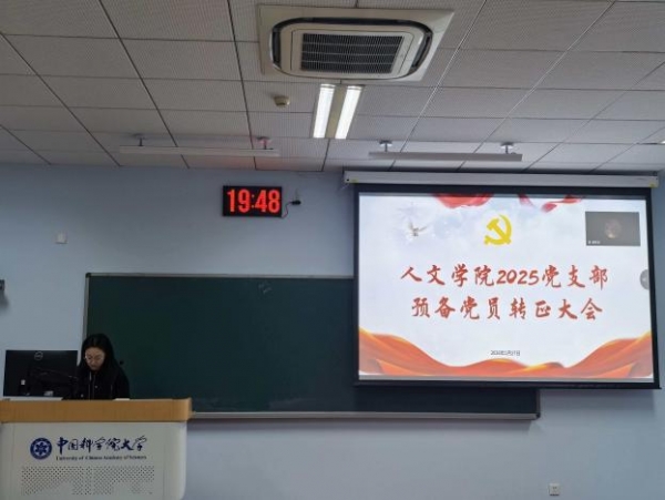 人文学院2025党支部于2026年1月27日于雁栖湖校区教一楼125召开党日活动暨党员转正支部大会。会议内容主要是理论学习和党员发展,支部全体党员参加会议,党支部书记谢梦珍主持会议。