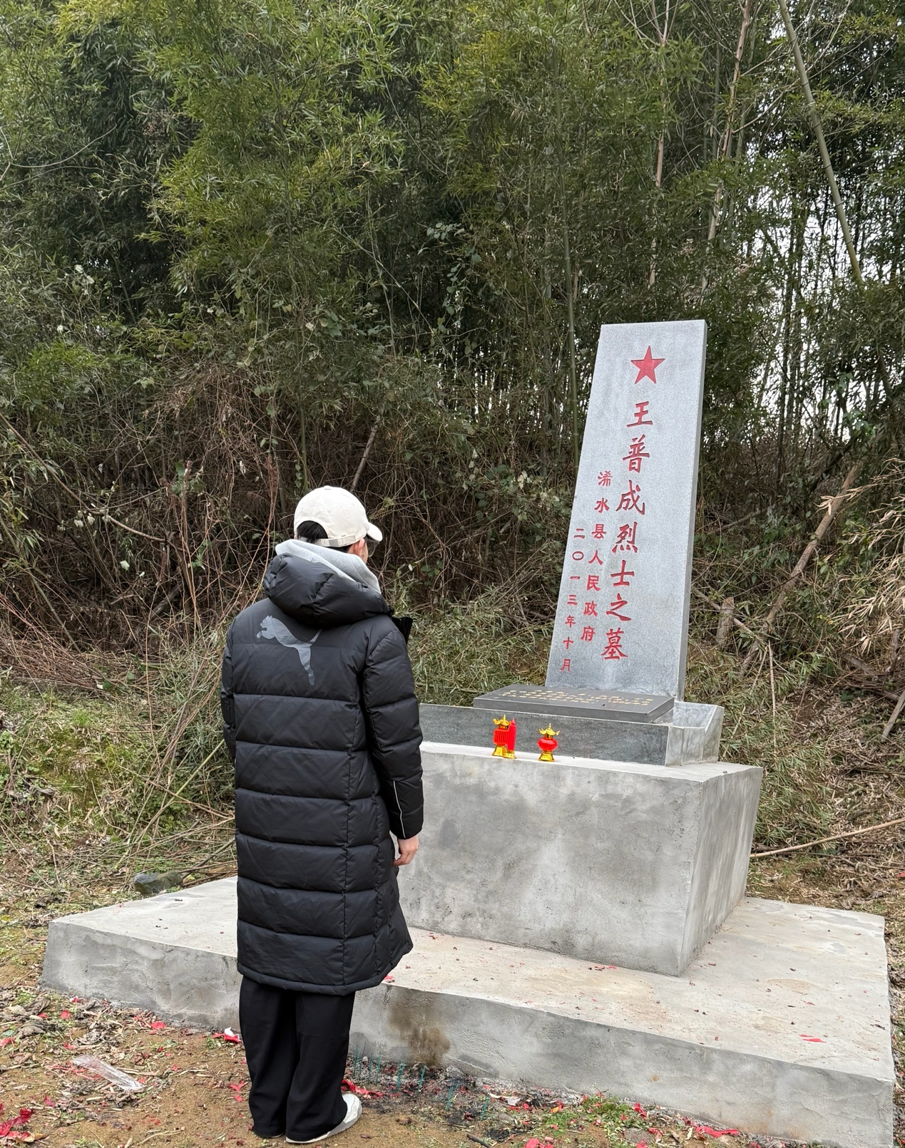 寒假期间,我来到家乡附近的抗美援朝烈士墓前开展社会实践活动。墓碑上镌刻着“王普成烈士之墓”,鲜红的五角星格外醒目。在静默肃立中,我向为国家和人民英勇牺牲的先烈致以崇高的敬意。抗美援朝战争中,无数志愿军战士舍生忘死,用青春与生命捍卫了国家尊严与世界和平。站在烈士墓前,我更加深刻地体会到今天幸福生活的来之不易。作为新时代青年,我们应铭记历史、传承红色精神,坚定理想信念,在学习和生活中努力奋斗,用实际行动赓续先辈的精神火炬。