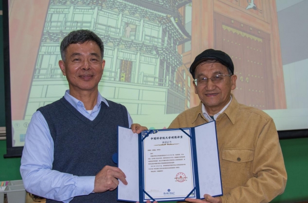 讲座结束后,主持人汪前进教授为林聪益研究员颁发了明德讲堂纪念证书,明德讲堂M1082期《守正创新——北宋水运仪象台在北京的重建》讲座就此落下帷幕。
