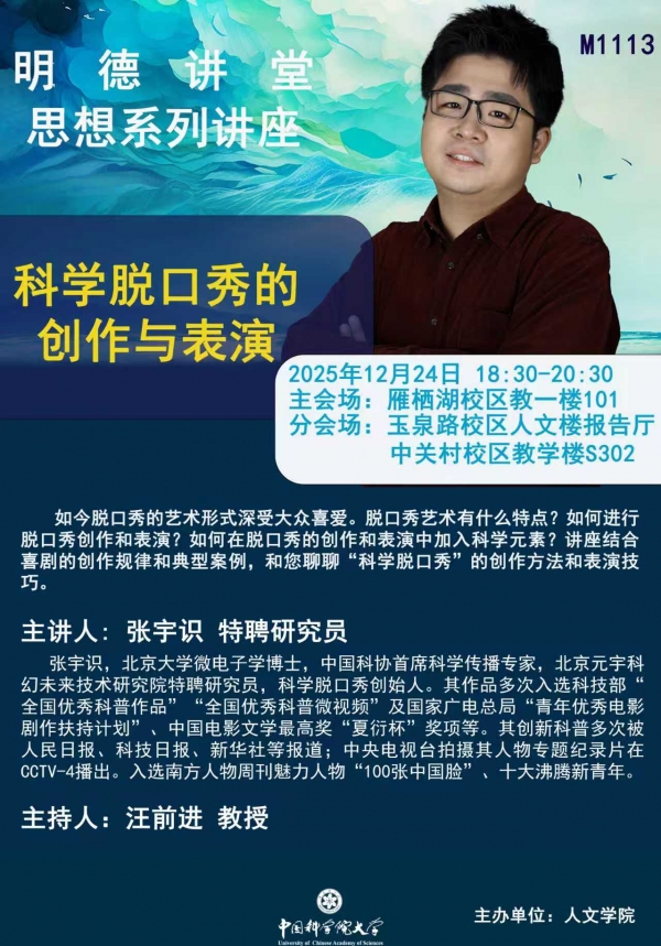 明德讲堂M1113预告:科学脱口秀的创作与表演