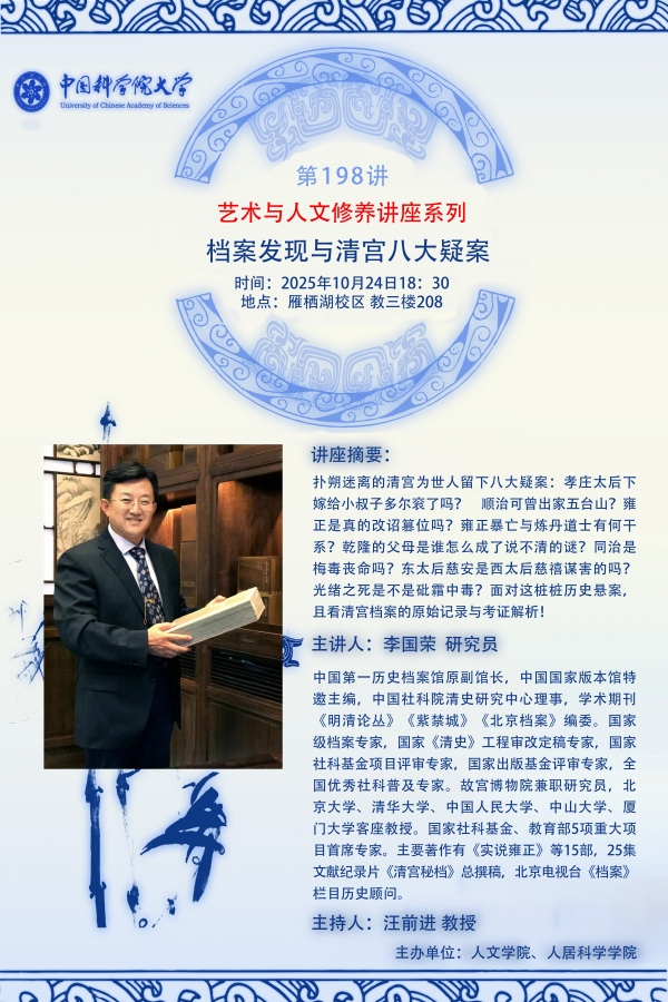 艺术与人文修养讲座系列第198讲预告:档案发现与清宫八大疑案