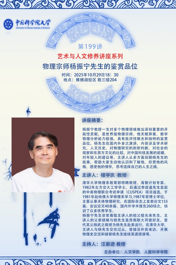 艺术与人文修养讲座系列199讲:物理宗师杨振宁先生的鉴赏品位