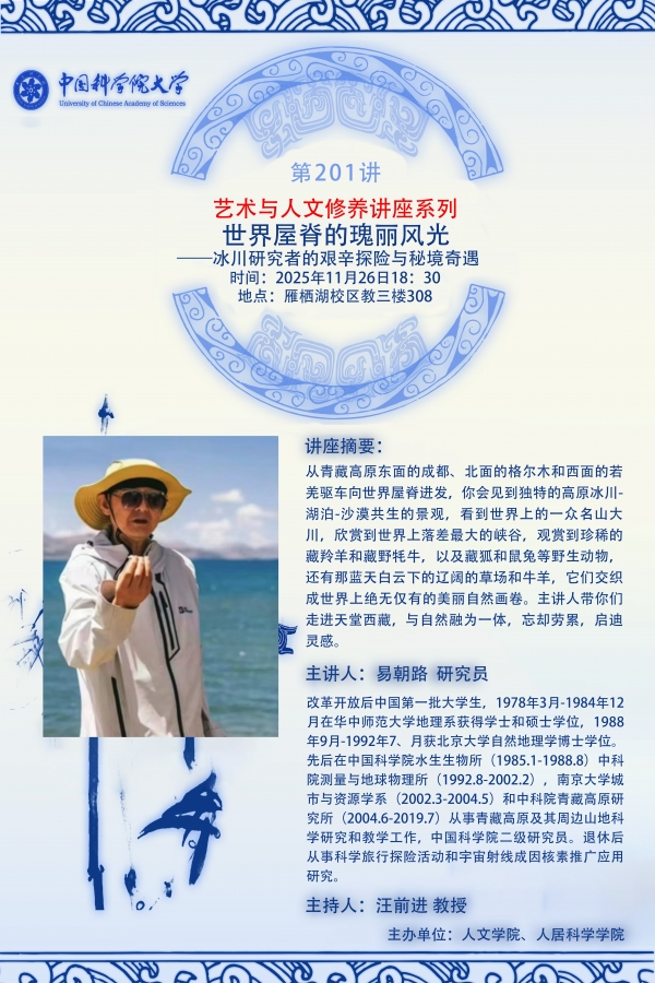 艺术与人文修养讲座系列第201讲预告:世界屋脊的瑰丽风光——冰川研究者的艰辛探险与秘境奇遇