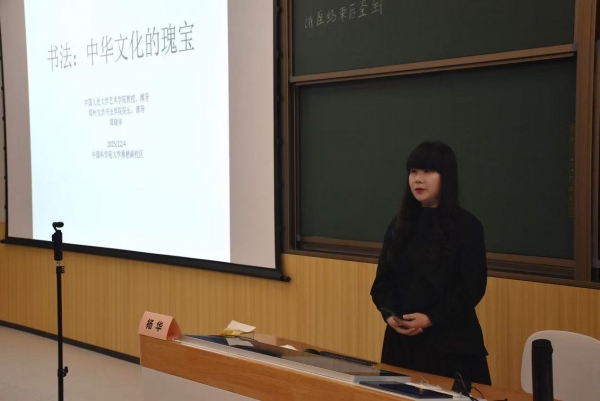 2025年12月4日,“书法:中华文化的瑰宝”主题讲座在中国科学院大学雁栖湖校区教三楼208教室举办。本次讲座特邀中国人民大学艺术学院教授、博导,郑州大学书法学院院长、博导郑晓华教授主讲,中国科学院大学人居科学学院杨华教授担任主持人。郑教授带领现场同学们探寻书法艺术的文化内涵、艺术特质与未来发展方向,感受中华文化瑰宝的独特魅力。