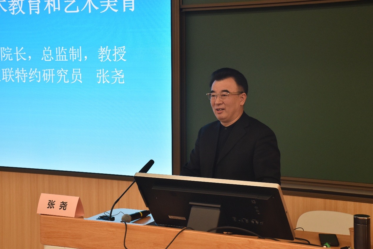 讲座伊始,张尧教授引用居斯塔夫・福楼拜的名言“艺术与科学总是在山脚下分手,最后又在山顶上相遇”,点明二者殊途同归的关系。他指出,科学以逻辑思维赋予艺术更强的表现力、创造力与传播力,而艺术则以形象思维为科技注入创造力、想象力与审美力。随后,张尧教授深入阐释“美”与“美育”的内涵。结合习近平总书记关于中华美学精神“知、情、意、行相统一”的要求,他提出应通过艺术审美培养审美体验,通过审美高度培养健全人格,并强调艺术是美育的重要载体和途径。